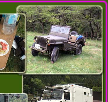 当方サイトです。今回はKDS神戸の大谷氏の快気祝いを兼ねての出席!たまたま来られた奈良の 赤土氏(上GPW)と一緒になりました。白のウニモグはBMの宮当氏の車両です。テンガロンハット?で頭の薄毛を 隠す大谷氏(笑)、いつも当サイトBBSに書き込みして頂いている JEEPミキさんに会えてやっと顔が分かりました。来年の愛知に参加できたらその時は宜しくです。