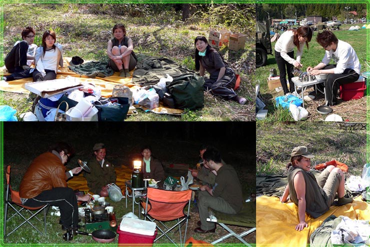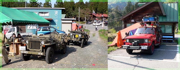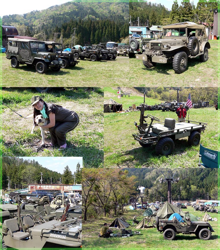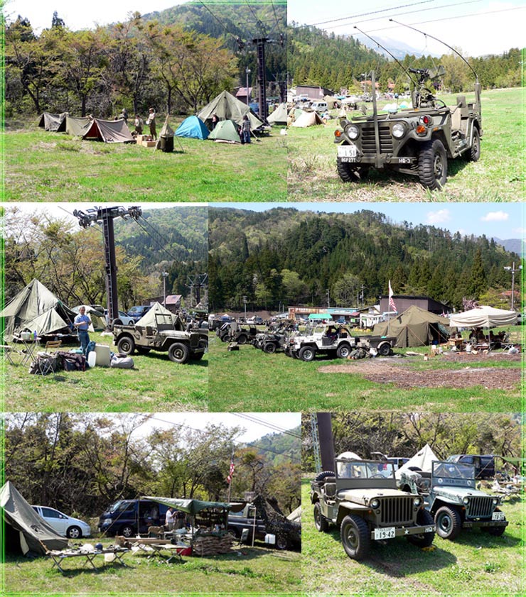 | 今日は、天気も良く、暖かく、みんなノンビリやってます。 年に一回の集まりで、ドレスアップされた車両や新たに参加した車両を見ながらの ジープ談義と言いましょうか?ミリタリー談義と言いましょうか? そこらじゅうで始まってました。でも本格的に始まるのは、夜にアルコール入れて本始動?そう思いませんか?みなさん・・・ |