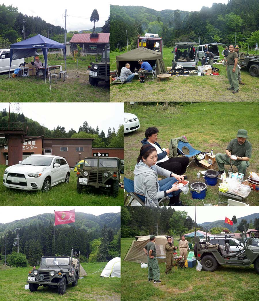 | 会場到着、そしてウッディパル余呉へ使用料を支払い会場へ古谷氏が受付をしてました。 そして挨拶とカンパをして事務局のところにいつもM151A2の車検をお願いしている北村自動車の社長もおられたので挨拶を、そして奥へ・・・ 懐かしい仲間に挨拶をして、今回は一番下の場所で設営しました。いろいろな物を食いビールを飲み、 楽しい時間を過ごしました。 いつもの大西さんと岩田さんのコンビ最高に面白い。二人が参加しているだけで来る価値があります。当方にとっては(笑) |