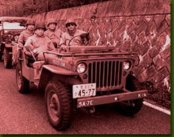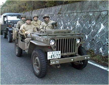 関西軍装備研究会の面々です。いつもコスチュームがきまっていて 大変素晴らしいのでトピックスに登場してもらいました。 コンボイ走行時、当方の後ろ車両だったんですがミラーごしに見ると 物凄くきまってました。時代を感じて頂くためにセピアカラー風に 仕上げた画像もごらん下さい。