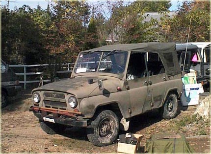 ソ連製の軍用車両でワズと言うらしいです。 当方は初めて見ました。日本国内において数台しか存在しないと言う 大変珍しい車両です。話によるとエンジンの圧縮比がかなり低くて 手回しクランクでエンジンが簡単にかけられるそうです。ジープも かけられますが、それ以上に楽なようで実際に実演もしてくれました。